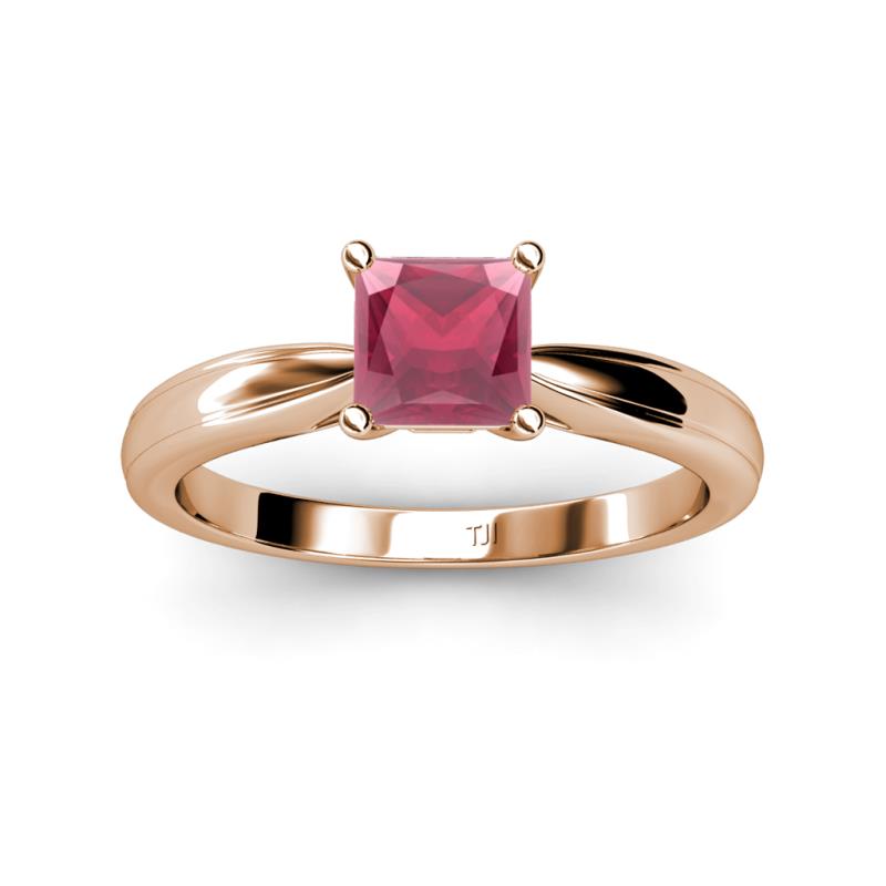 Princess Cut (5.5 mm) Rhodolite Garnet Womens Solitaire Engagement Ring 0.95 ct 18K Rose Gold More Details ...