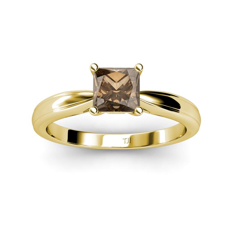 Princess Cut (5.5 mm) Smoky Quartz Womens Solitaire Engagement Ring 0.85 ct 14K Yellow Gold More Details ...