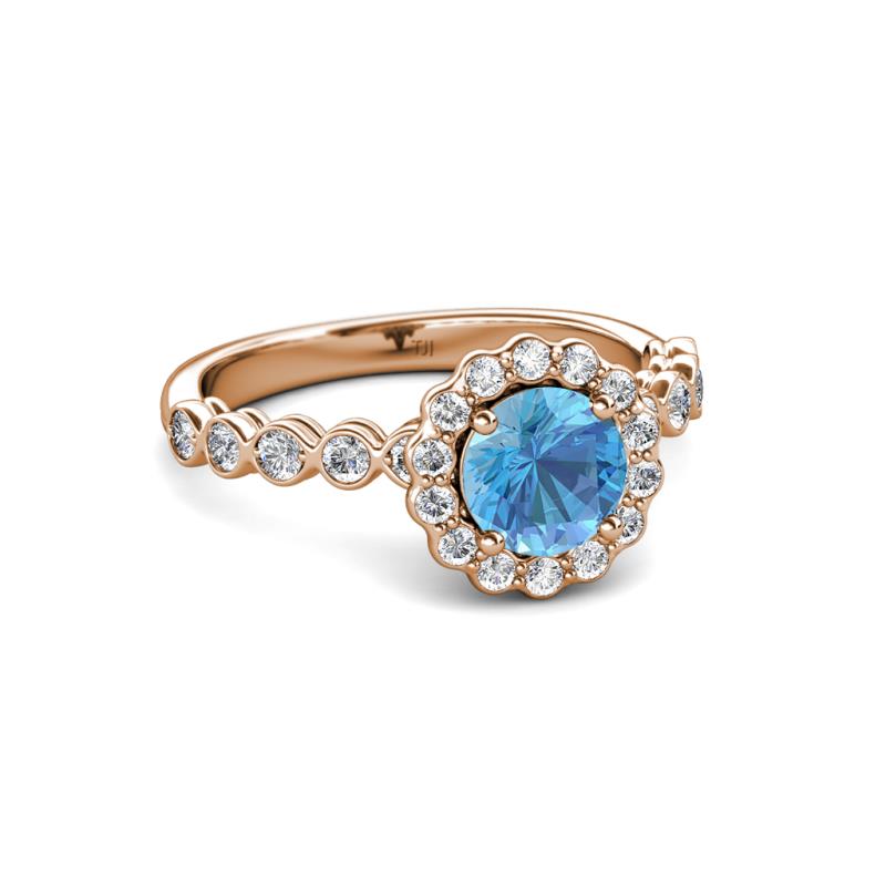 1 1/2 ctw Round Blue Topaz and Diamond Womens Halo Engagement Ring 18K Rose Gold More Details ...