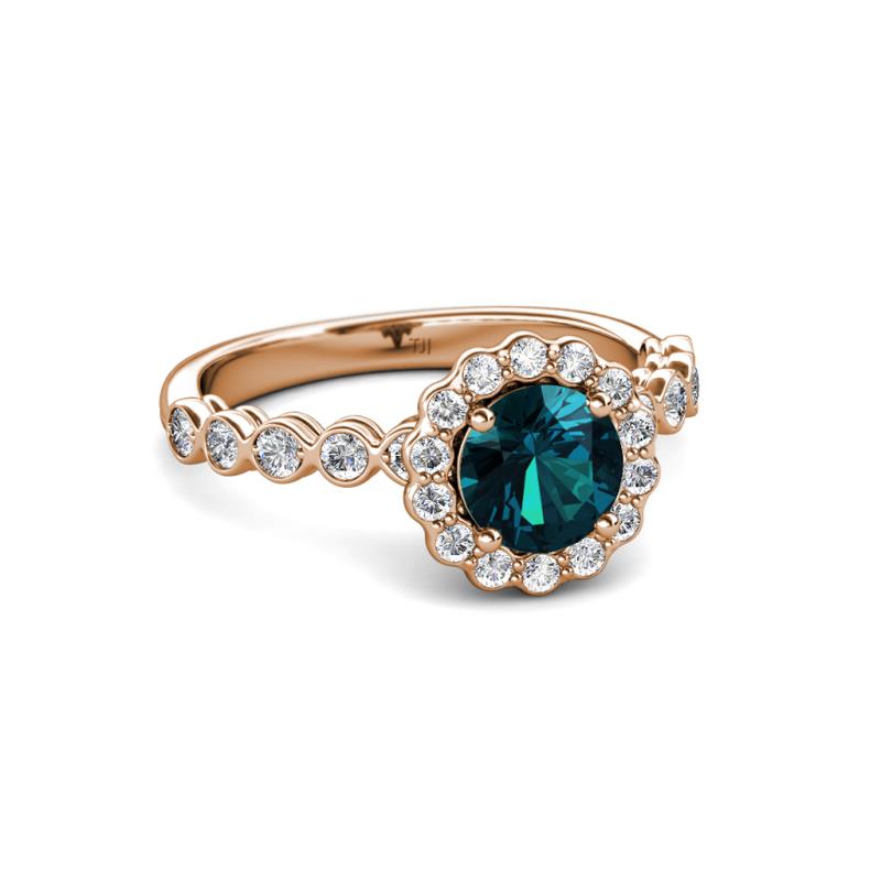 1 1/2 ctw Round Blue and White Diamond Womens Halo Engagement Ring 14K Rose Gold More Details ...