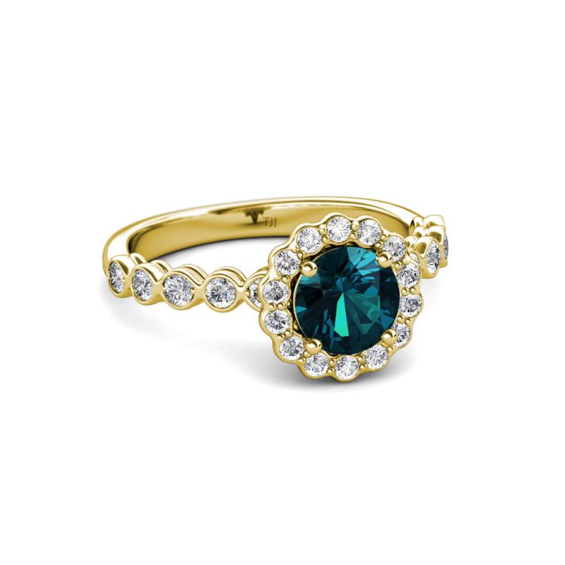 1 1/2 ctw Round Blue and White Diamond Womens Halo Engagement Ring 18K Yellow Gold More Details ...