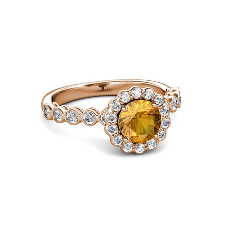1 2/5 ctw Round Citrine and Diamond Womens Halo Engagement Ring 18K Rose Gold More Details ...