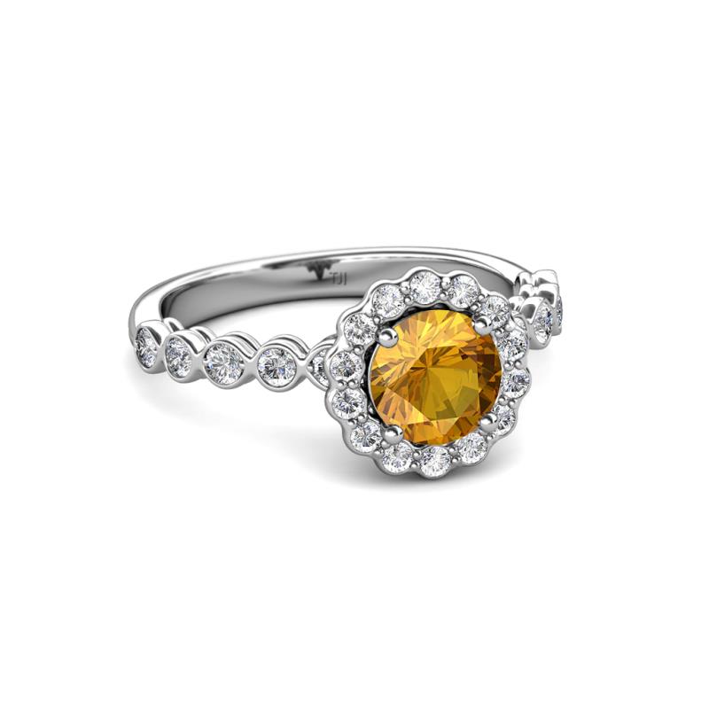 1 2/5 ctw Round Citrine and Diamond Womens Halo Engagement Ring Platinum More Details ...
