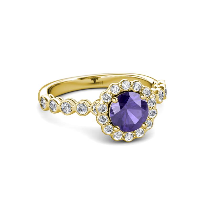 1 2/5 ctw Round Iolite and Diamond Womens Halo Engagement Ring 18K Yellow Gold More Details ...