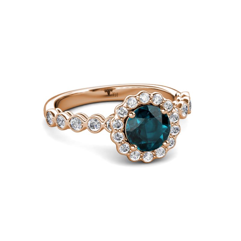 1 1/2 ctw Round London Blue Topaz and Diamond Womens Halo Engagement Ring 18K Rose Gold More Details ...