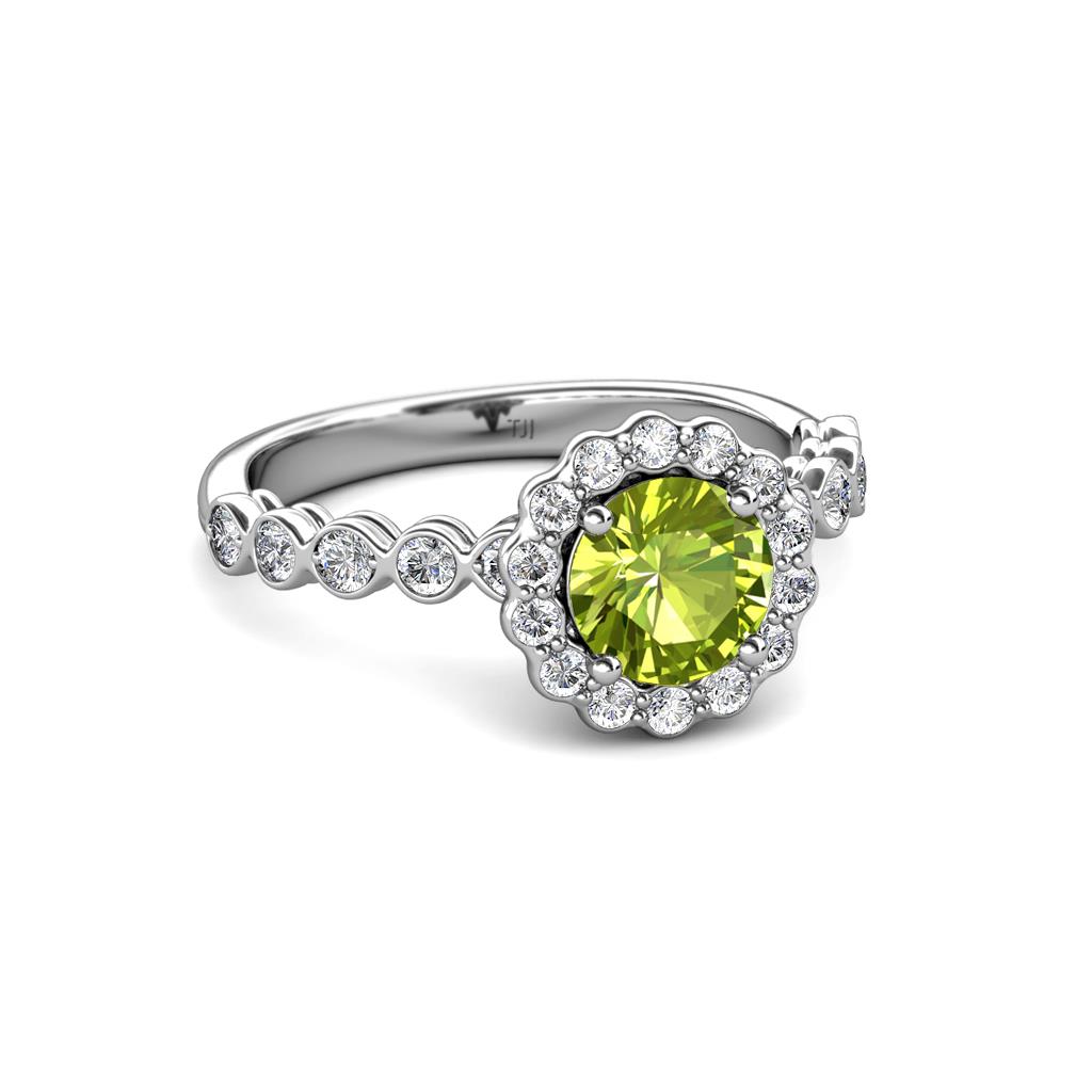 1 1/2 ctw Round Peridot and Diamond Womens Halo Engagement Ring Platinum More Details ...