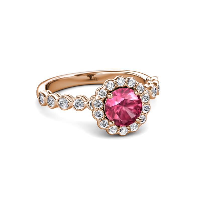 1 2/5 ctw Round Pink Tourmaline and Diamond Womens Halo Engagement Ring 14K Rose Gold More Details ...