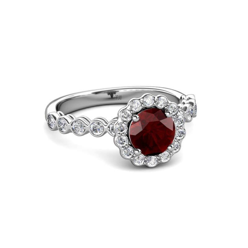 1 1/2 ctw Round Red Garnet and Diamond Womens Halo Engagement Ring Platinum More Details ...