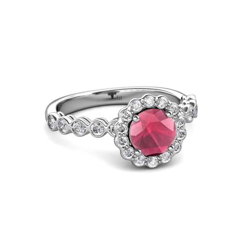 1 1/2 ctw Round Rhodolite Garnet and Diamond Womens Halo Engagement Ring Platinum More Details ...