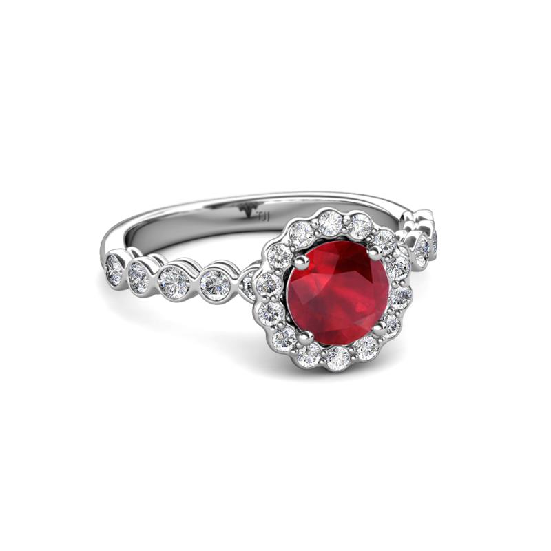 1 1/2 ctw Round Ruby and Diamond Womens Halo Engagement Ring Platinum More Details ...