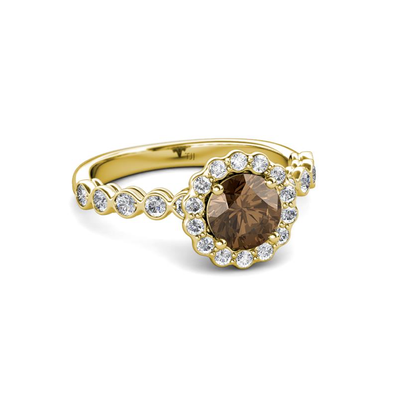 1 1/2 ctw Round Smoky Quartz and Diamond Womens Halo Engagement Ring 18K Yellow Gold More Details ...
