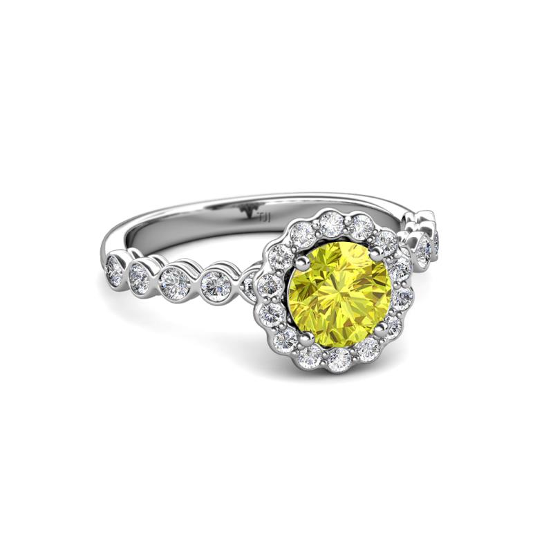 1 1/2 ctw Round Yellow and White Diamond Womens Halo Engagement Ring Platinum More Details ...