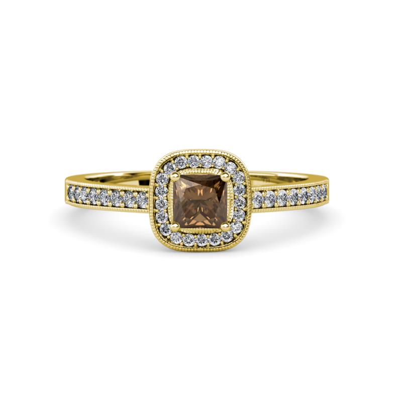 Princess Cut (5 mm) Smoky Quartz and Diamond Womens Halo Engagement Ring 0.85 ctw 14K Yellow Gold More Details ...