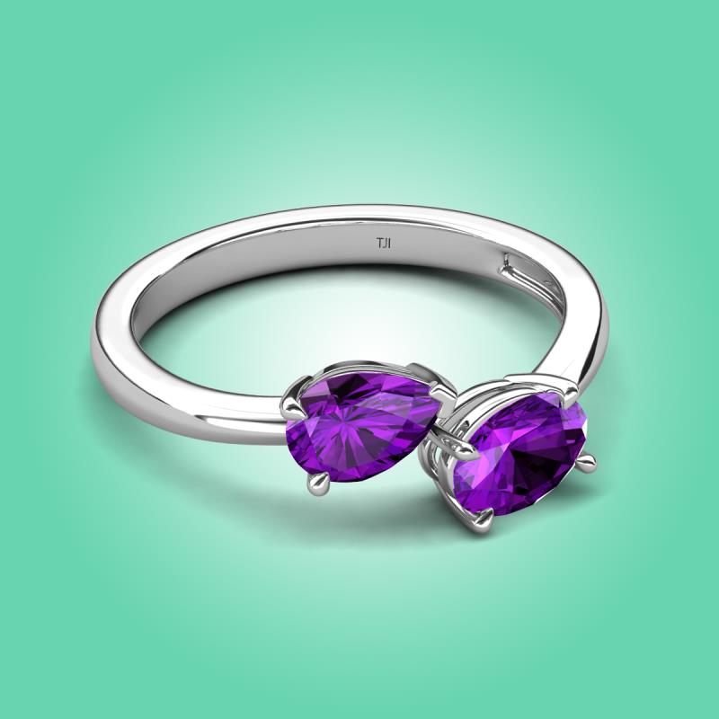 1.37 ctw Amethyst Pear Shape 7x5 mm & Amethyst Oval Shape 7x5 mm with Prong setting Two Stone Duo Women Engagement Ring in 10K White Gold More Details ...