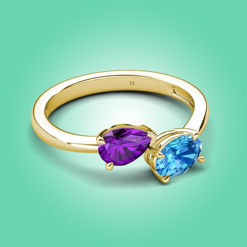 1.65 ctw Amethyst Pear Shape 7x5 mm & Blue Topaz Oval Shape 7x5 mm with Prong setting Two Stone Duo Women Engagement Ring in 18K Yellow Gold More Details ...