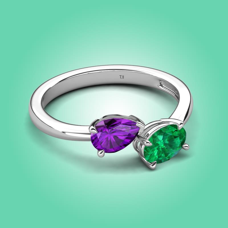 1.45 ctw Amethyst Pear Shape 7x5 mm & Emerald Oval Shape 7x5 mm with Prong setting Two Stone Duo Women Engagement Ring in 18K White Gold More Details ...