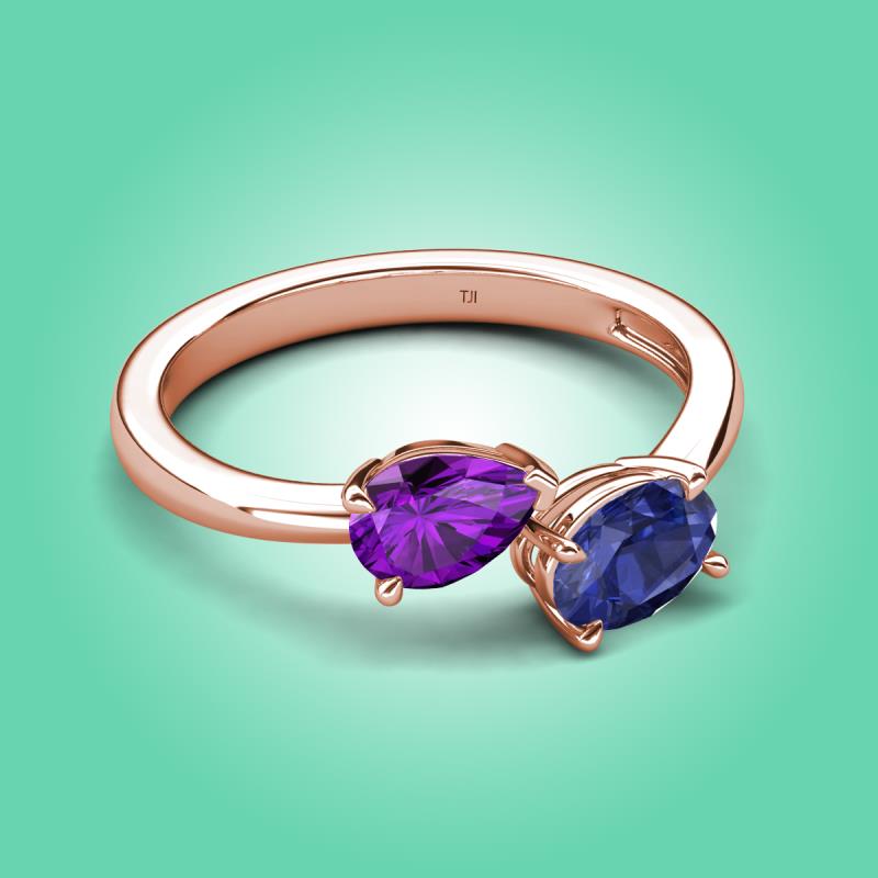 1.32 ctw Amethyst Pear Shape 7x5 mm & Iolite Oval Shape 7x5 mm with Prong setting Two Stone Duo Women Engagement Ring in 18K Rose Gold More Details ...