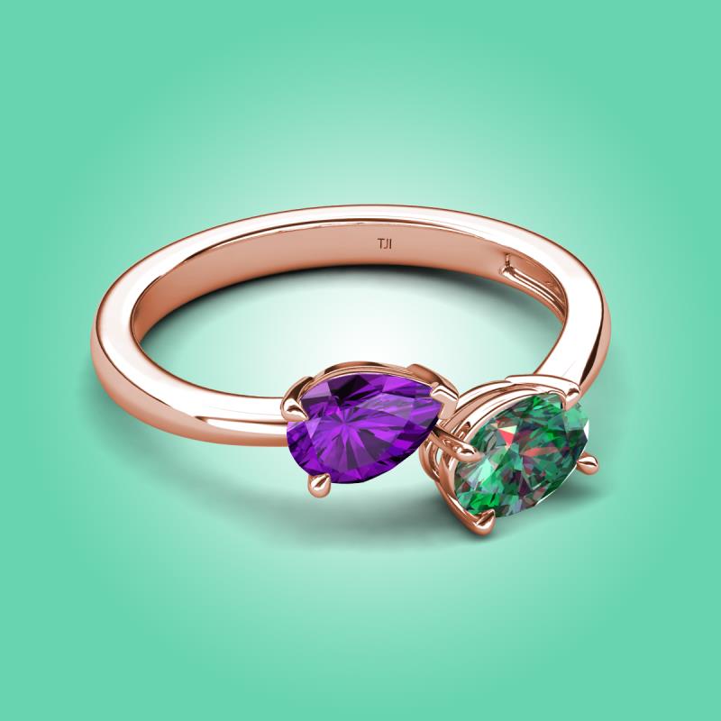1.81 ctw Amethyst Pear Shape 7x5 mm & Lab Created Alexandrite Oval Shape 7x5 mm with Prong setting Two Stone Duo Women Engagement Ring in 18K Rose Gold More Details ...