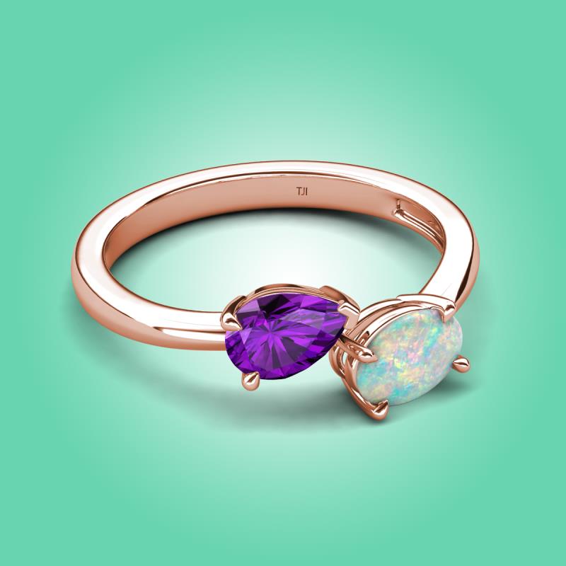 1.15 ctw Amethyst Pear Shape 7x5 mm & Opal Oval Shape 7x5 mm with Prong setting Two Stone Duo Women Engagement Ring in 14K Rose Gold More Details ...