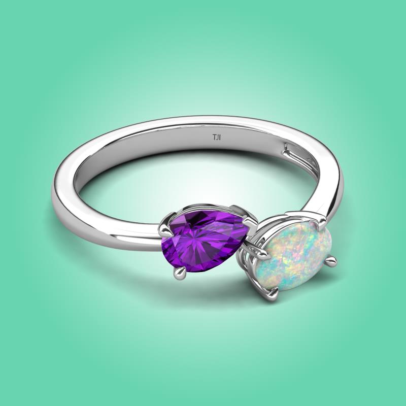 1.15 ctw Amethyst Pear Shape 7x5 mm & Opal Oval Shape 7x5 mm with Prong setting Two Stone Duo Women Engagement Ring in Platinum More Details ...