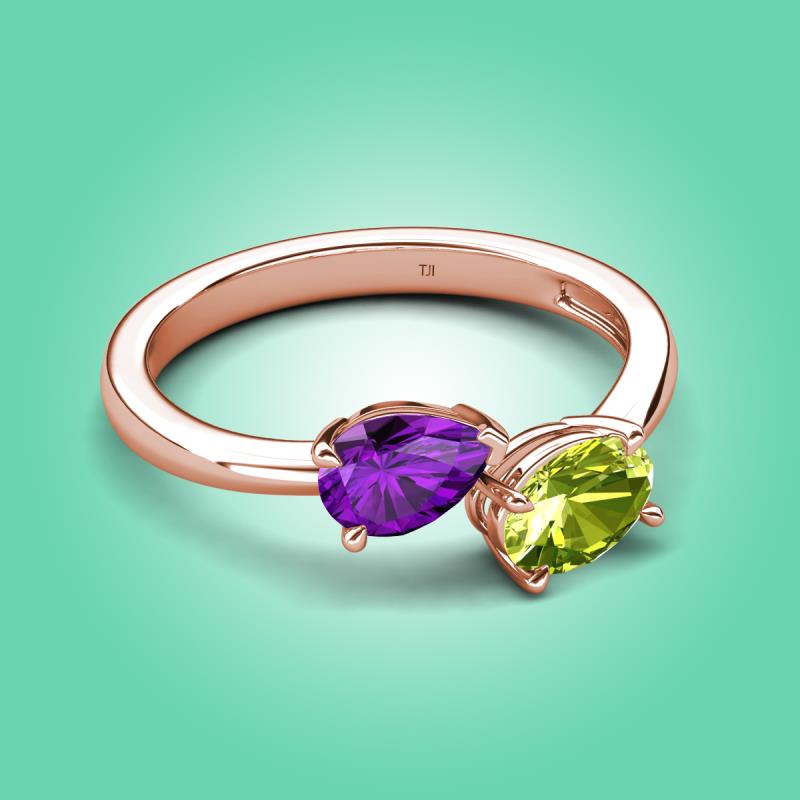 1.55 ctw Amethyst Pear Shape 7x5 mm & Peridot Oval Shape 7x5 mm with Prong setting Two Stone Duo Women Engagement Ring in 14K Rose Gold More Details ...