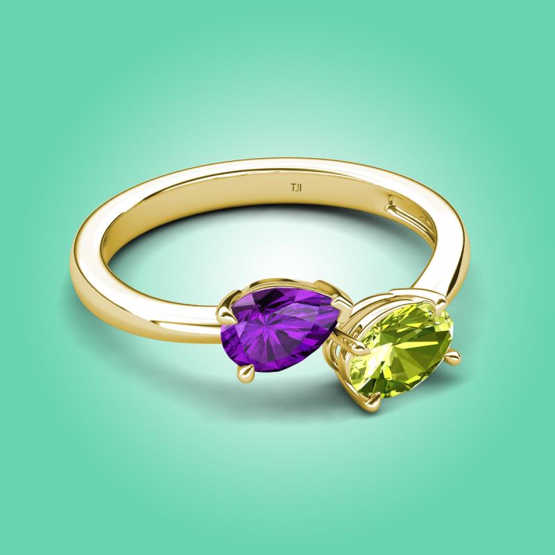 1.55 ctw Amethyst Pear Shape 7x5 mm & Peridot Oval Shape 7x5 mm with Prong setting Two Stone Duo Women Engagement Ring in 14K Yellow Gold More Details ...