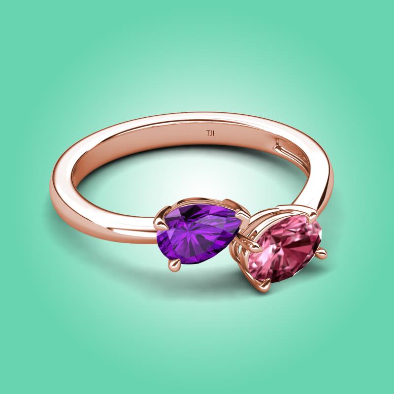 1.50 ctw Amethyst Pear Shape 7x5 mm & Pink Tourmaline Oval Shape 7x5 mm with Prong setting Two Stone Duo Women Engagement Ring in 18K Rose Gold More Details ...