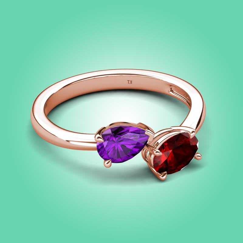 1.60 ctw Amethyst Pear Shape 7x5 mm & Red Garnet Oval Shape 7x5 mm with Prong setting Two Stone Duo Women Engagement Ring in 14K Rose Gold More Details ...
