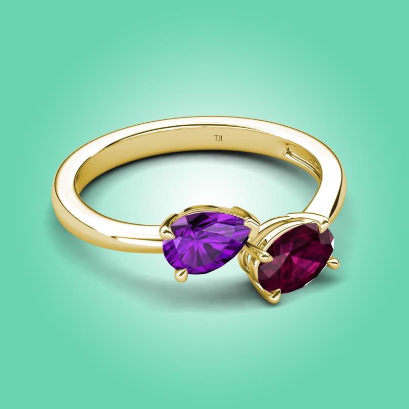 1.65 ctw Amethyst Pear Shape 7x5 mm & Rhodolite Garnet Oval Shape 7x5 mm with Prong setting Two Stone Duo Women Engagement Ring in 18K Yellow Gold More Details ...