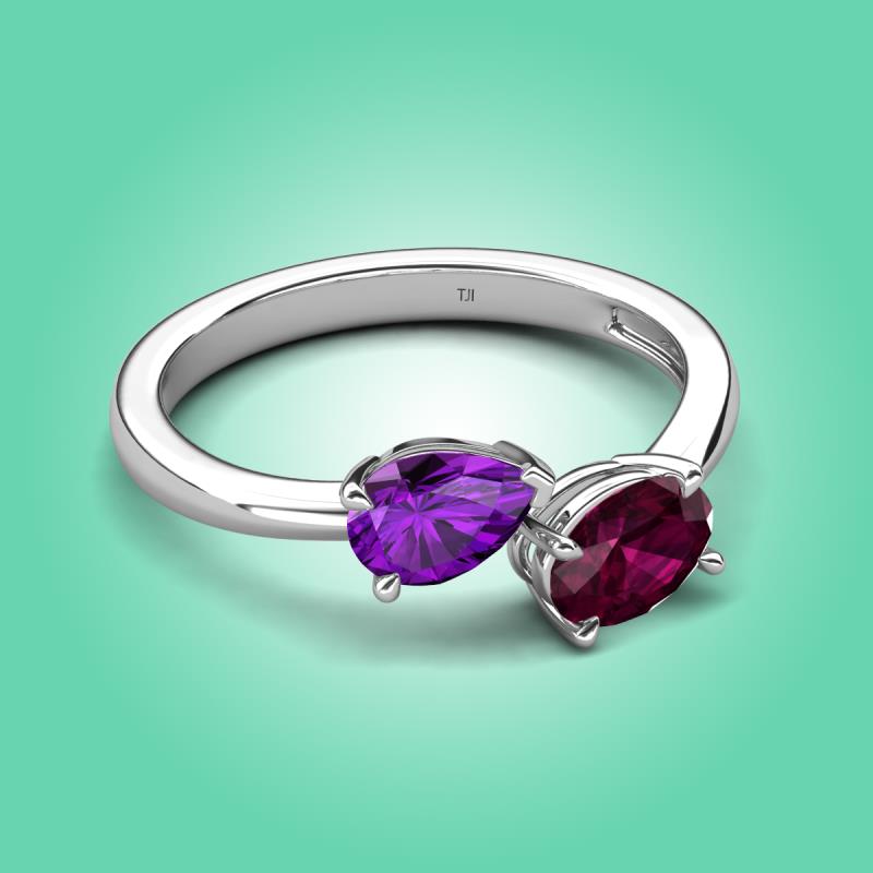 1.65 ctw Amethyst Pear Shape 7x5 mm & Rhodolite Garnet Oval Shape 7x5 mm with Prong setting Two Stone Duo Women Engagement Ring in Platinum More Details ...