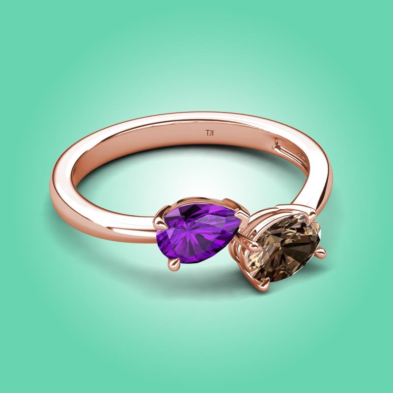 1.40 ctw Amethyst Pear Shape 7x5 mm & Smoky Quartz Oval Shape 7x5 mm with Prong setting Two Stone Duo Women Engagement Ring in 14K Rose Gold More Details ...