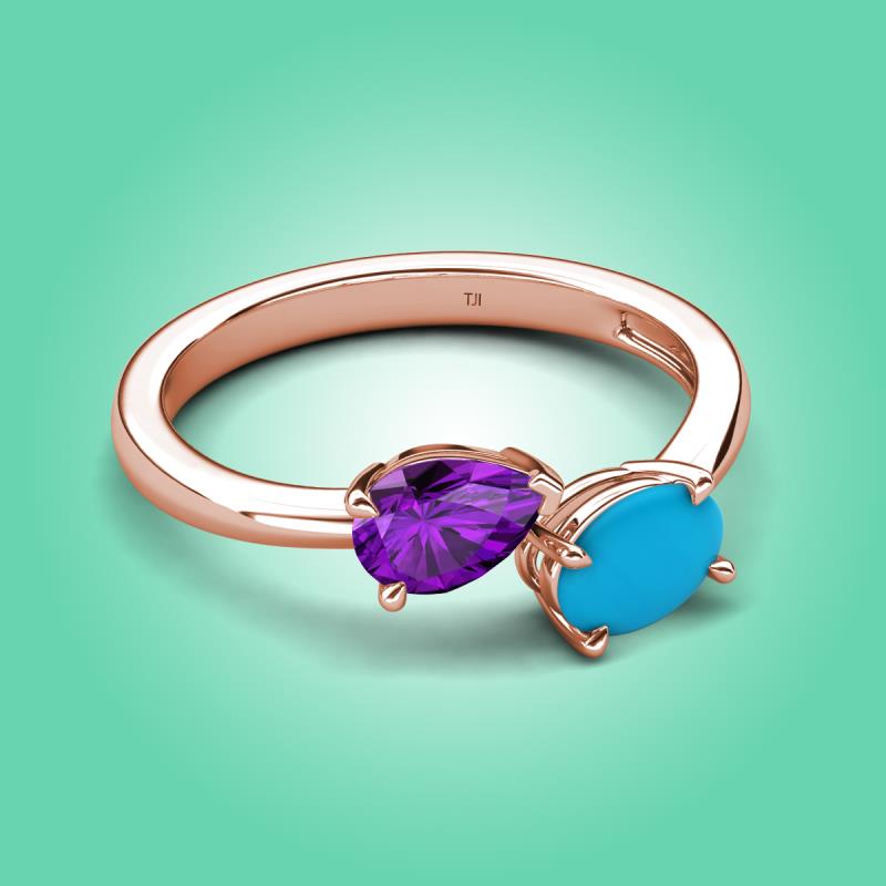 1.35 ctw Amethyst Pear Shape 7x5 mm & Turquoise Oval Shape 7x5 mm with Prong setting Two Stone Duo Women Engagement Ring in 18K Rose Gold More Details ...