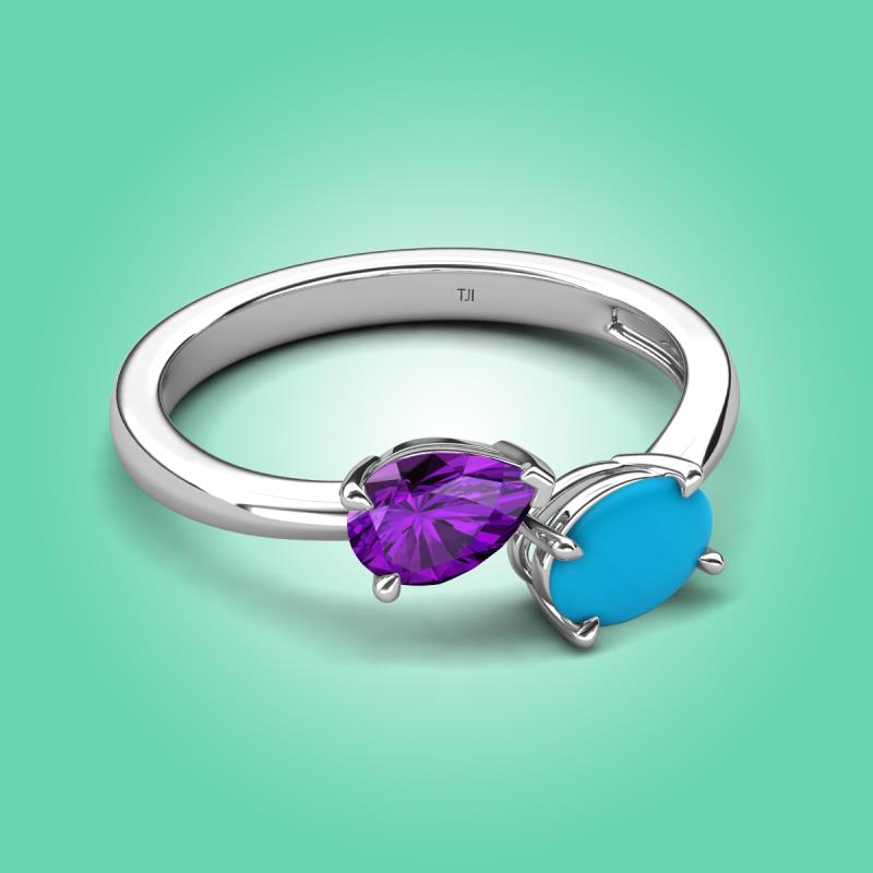 1.35 ctw Amethyst Pear Shape 7x5 mm & Turquoise Oval Shape 7x5 mm with Prong setting Two Stone Duo Women Engagement Ring in Platinum More Details ...