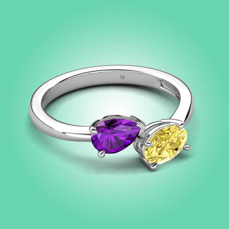 1.65 ctw Amethyst Pear Shape 7x5 mm & Yellow Sapphire Oval Shape 7x5 mm with Prong setting Two Stone Duo Women Engagement Ring in 18K White Gold More Details ...
