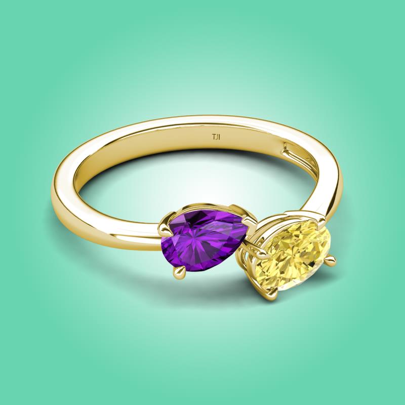 The Amethyst Pear Shape and Yellow Sapphire Oval Shape Toi Et Moi Duo Ring of 1.65 ctw is the perfect representation of your unique and everlasting bond. The pear and oval shaped gemstones set in a Prong setting, complement each other perfectly, creating a stunning and timeless design that will capture the heart of your loved one, symbolizing your eternal love and commitment that will last a lifetime.
