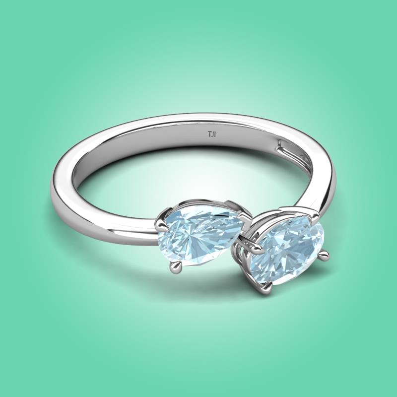 1.32 ctw Aquamarine Pear Shape 7x5 mm & Aquamarine Oval Shape 7x5 mm with Prong setting Two Stone Duo Women Engagement Ring in 10K White Gold More Details ...