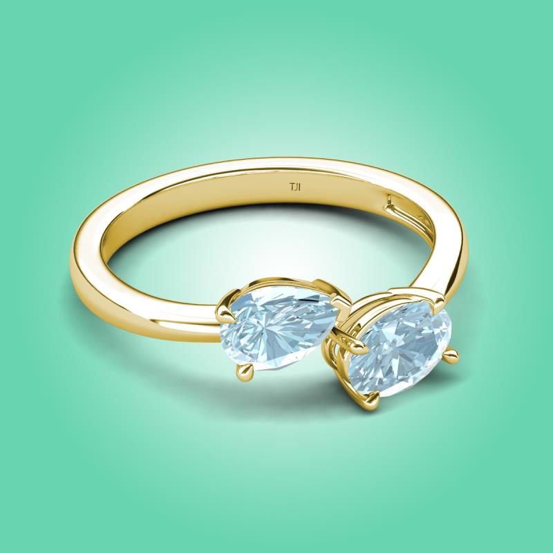 1.32 ctw Aquamarine Pear Shape 7x5 mm & Aquamarine Oval Shape 7x5 mm with Prong setting Two Stone Duo Women Engagement Ring in 10K Yellow Gold More Details ...