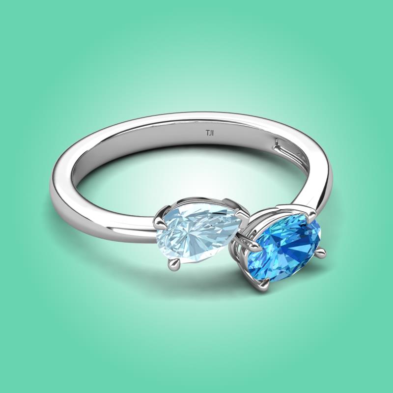 1.60 ctw Aquamarine Pear Shape 7x5 mm & Blue Topaz Oval Shape 7x5 mm with Prong setting Two Stone Duo Women Engagement Ring in 14K White Gold More Details ...