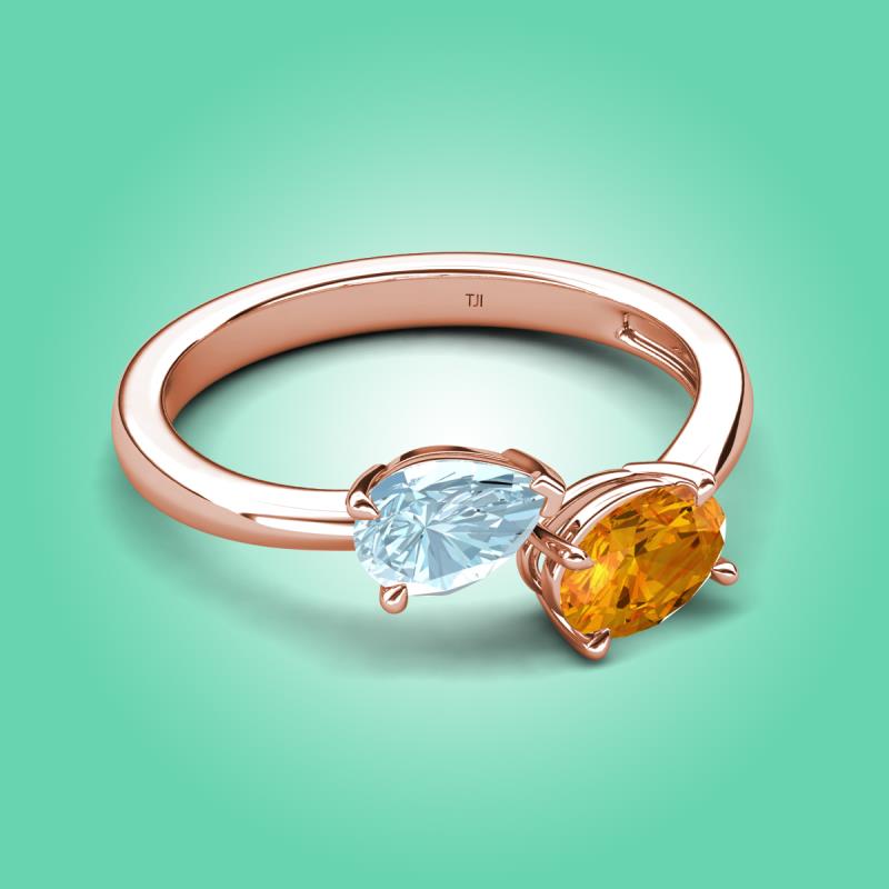 1.32 ctw Aquamarine Pear Shape 7x5 mm & Citrine Oval Shape 7x5 mm with Prong setting Two Stone Duo Women Engagement Ring in 14K Rose Gold More Details ...