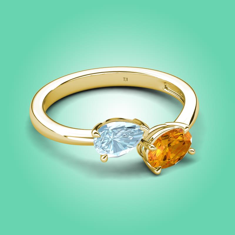 1.32 ctw Aquamarine Pear Shape 7x5 mm & Citrine Oval Shape 7x5 mm with Prong setting Two Stone Duo Women Engagement Ring in 14K Yellow Gold More Details ...