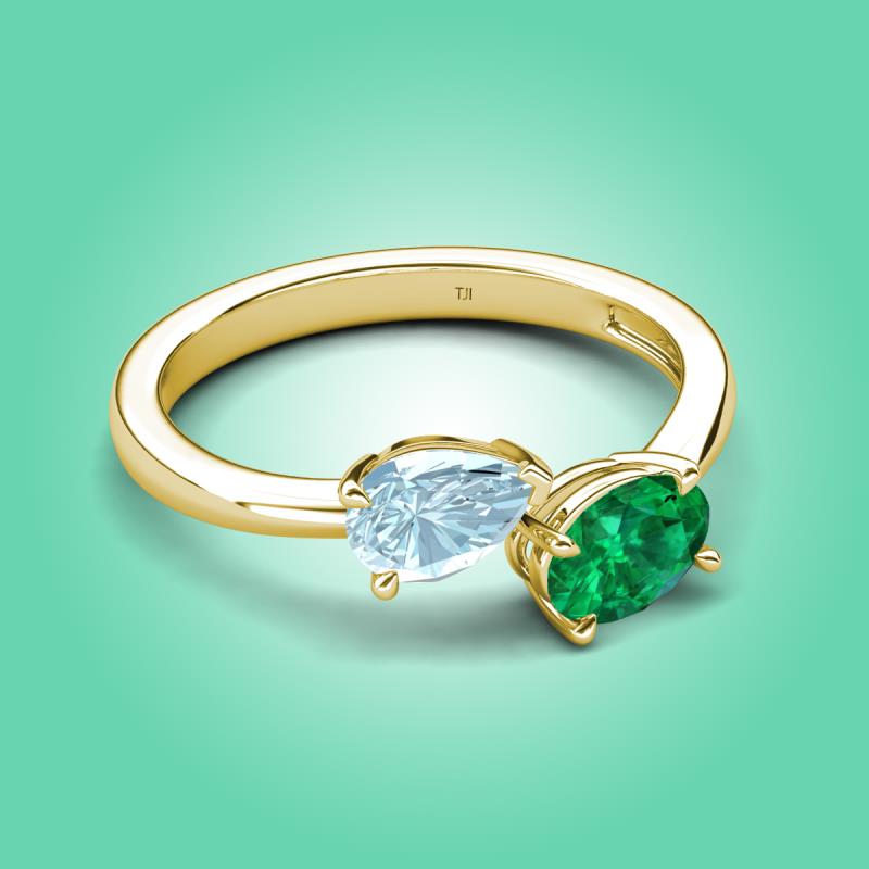 1.40 ctw Aquamarine Pear Shape 7x5 mm & Emerald Oval Shape 7x5 mm with Prong setting Two Stone Duo Women Engagement Ring in 18K Yellow Gold More Details ...