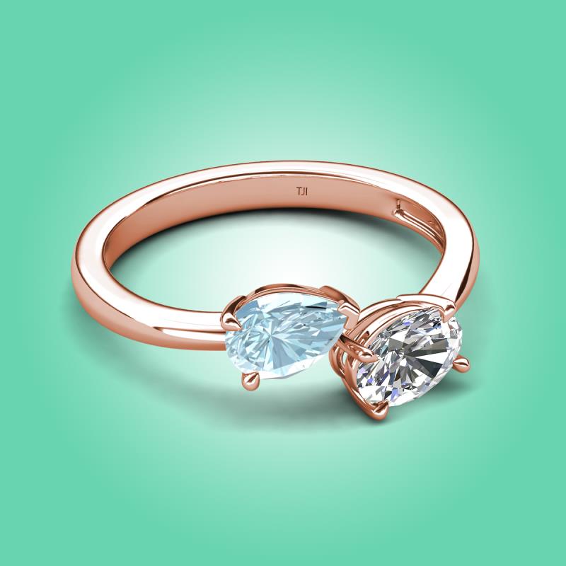 1.40 ctw Aquamarine Pear Shape 7x5 mm & GIA Certified Natural Diamond Oval Shape 7x5 mm with Prong setting Two Stone Duo Women Engagement Ring in 18K Rose Gold More Details ...