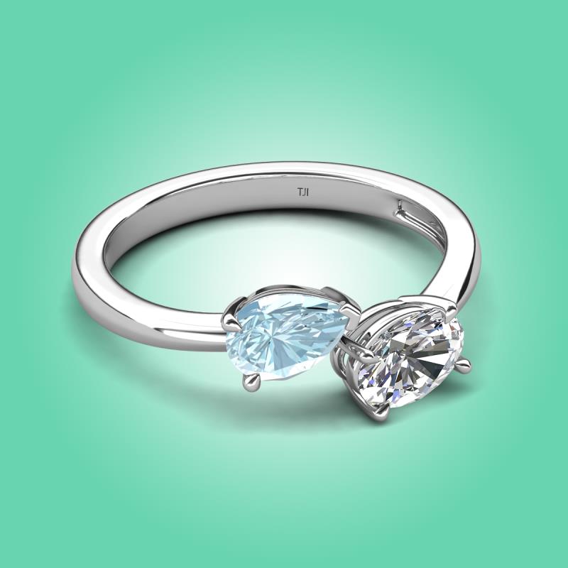 The Aquamarine Pear Shape and IGI Certified Lab Grown Diamond Oval Shape Toi Et Moi Duo Ring of 1.40 ctw is the perfect representation of your unique and everlasting bond. The pear and oval shaped gemstones set in a Prong setting, complement each other perfectly, creating a stunning and timeless design that will capture the heart of your loved one, symbolizing your eternal love and commitment that will last a lifetime.