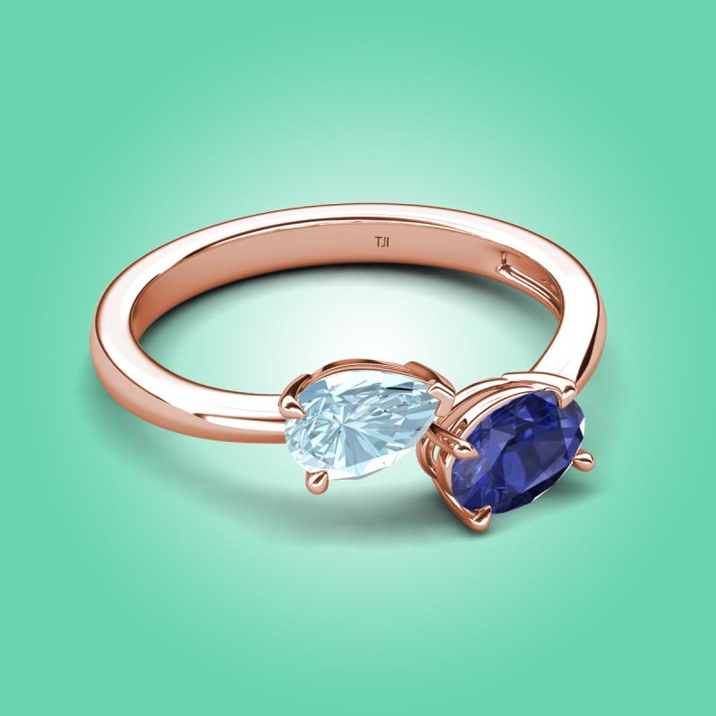 1.27 ctw Aquamarine Pear Shape 7x5 mm & Iolite Oval Shape 7x5 mm with Prong setting Two Stone Duo Women Engagement Ring in 14K Rose Gold More Details ...
