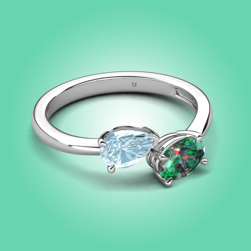 1.76 ctw Aquamarine Pear Shape 7x5 mm & Lab Created Alexandrite Oval Shape 7x5 mm with Prong setting Two Stone Duo Women Engagement Ring in Platinum More Details ...