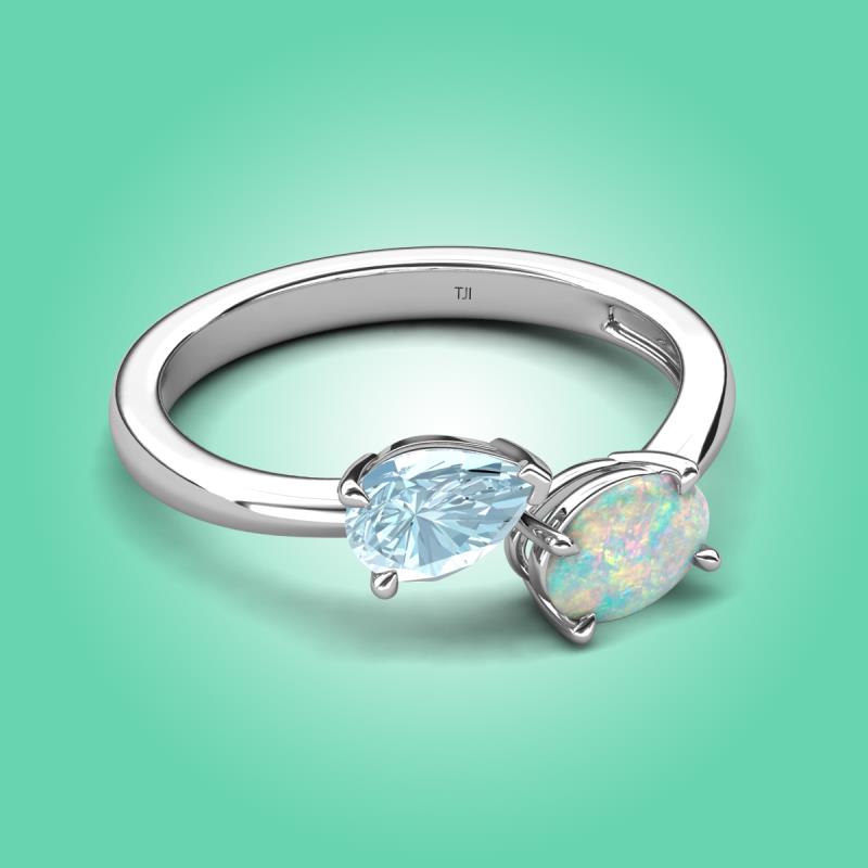 1.10 ctw Aquamarine Pear Shape 7x5 mm & Opal Oval Shape 7x5 mm with Prong setting Two Stone Duo Women Engagement Ring in 14K White Gold More Details ...