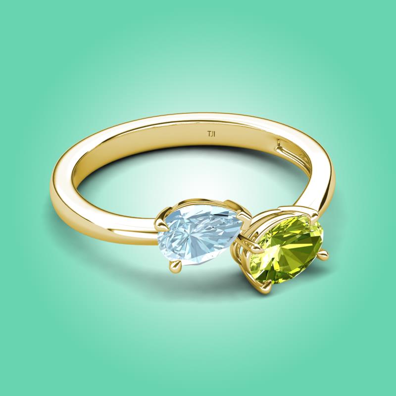 1.50 ctw Aquamarine Pear Shape 7x5 mm & Peridot Oval Shape 7x5 mm with Prong setting Two Stone Duo Women Engagement Ring in 14K Yellow Gold More Details ...