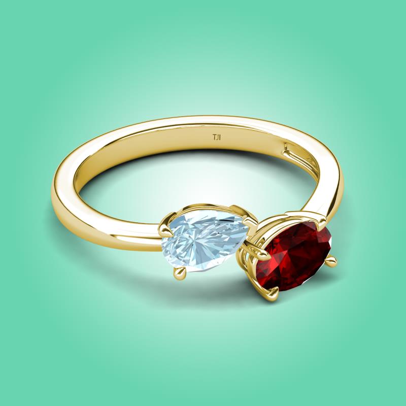 1.55 ctw Aquamarine Pear Shape 7x5 mm & Red Garnet Oval Shape 7x5 mm with Prong setting Two Stone Duo Women Engagement Ring in 14K Yellow Gold More Details ...