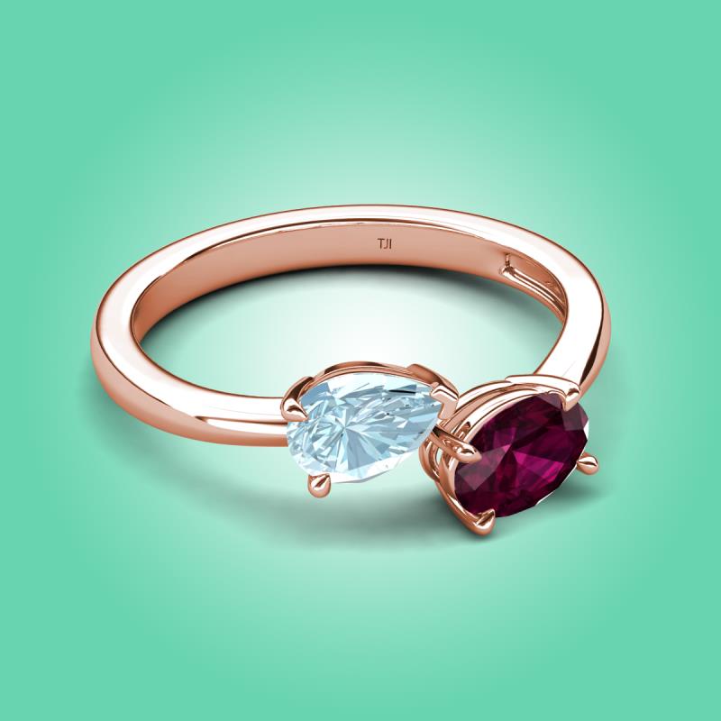 1.60 ctw Aquamarine Pear Shape 7x5 mm & Rhodolite Garnet Oval Shape 7x5 mm with Prong setting Two Stone Duo Women Engagement Ring in 18K Rose Gold More Details ...