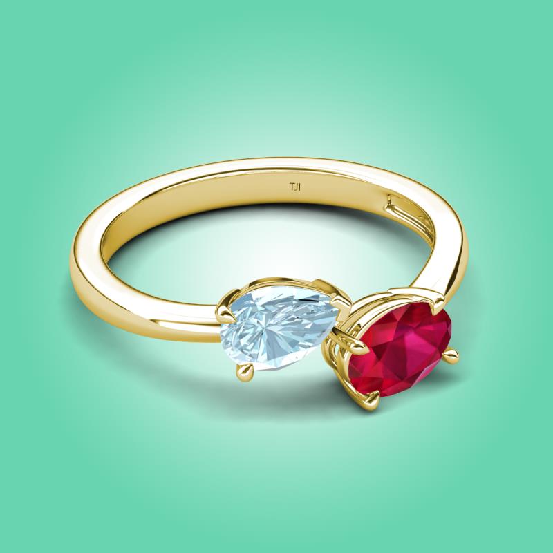 1.50 ctw Aquamarine Pear Shape 7x5 mm & Ruby Oval Shape 7x5 mm with Prong setting Two Stone Duo Women Engagement Ring in 10K Yellow Gold More Details ...